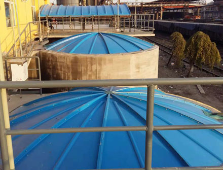 用于污水池和氧化溝的密封,防止臭氣散發(fā)。在蓋板上設(shè)排氣口,將臭氣用管道引出至除臭設(shè)備。