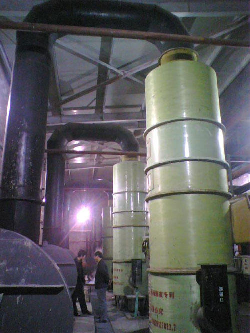 脫硫是控制二氧化硫排放的技術,除塵器不僅能脫除煙氣中的二氧化硫,并能生產(chǎn)出高附加值的硫酸氨化肥產(chǎn)品。該鍋爐除塵設備利用一定濃度(此處以28%為例)的氨水作為脫硫劑,生成的硫酸氨漿液,輸送到化肥廠處理系統(tǒng)。脫硫過程中使用的氨水需要量,由預設PH控制閥來自動調(diào)節(jié),并由流量計進行測定。硫酸氨結晶體在脫硫除塵器中被飽和的硫酸氨漿液結晶出來,生成35%重量比左右的懸浮粒子。這些漿液被子泵送到處理場,經(jīng)過初級和二級脫水,然后,再送到化肥廠進行進一步脫水、干燥、冷凝和存儲,通過鍋爐除塵設備對煙氣脫硫的同時,鍋爐除塵器還生成了可觀的副產(chǎn)品,達到一定的經(jīng)濟效益。