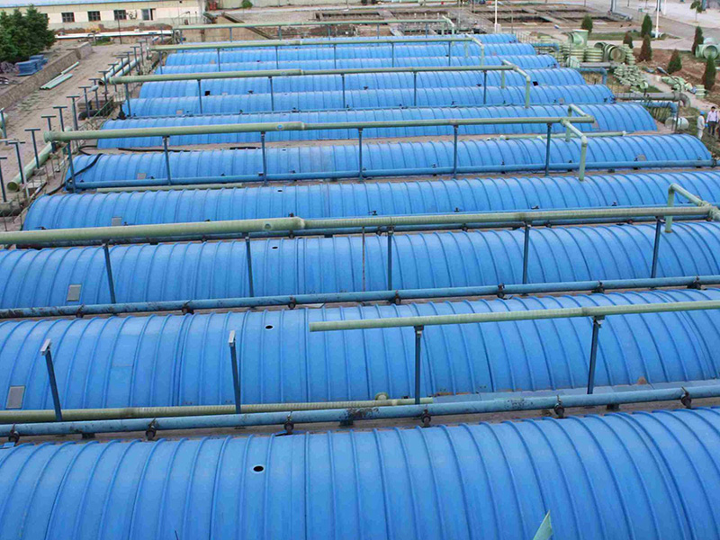 用于污水池和氧化溝的密封,防止臭氣散發(fā)。在蓋板上設(shè)排氣口,將臭氣用管道引出至除 臭設(shè)備。